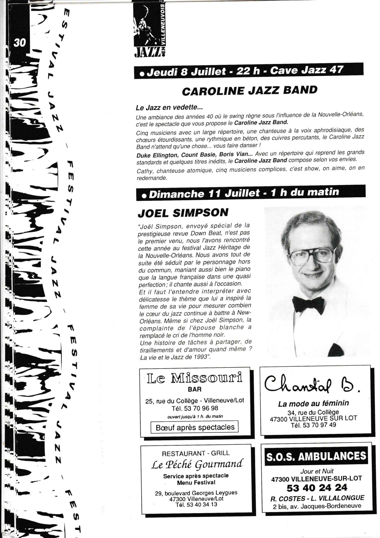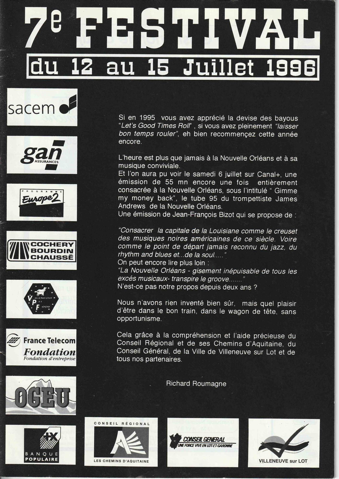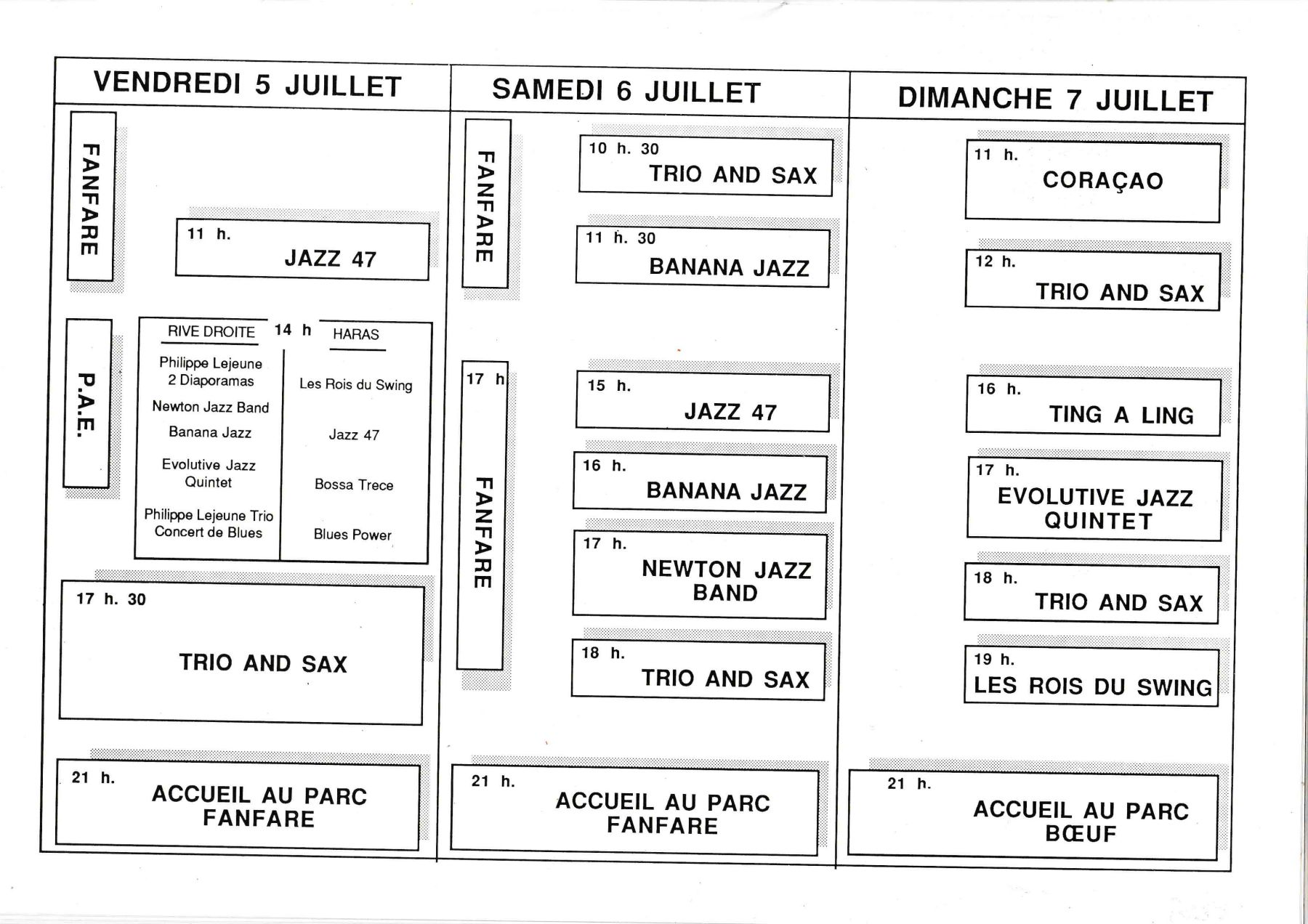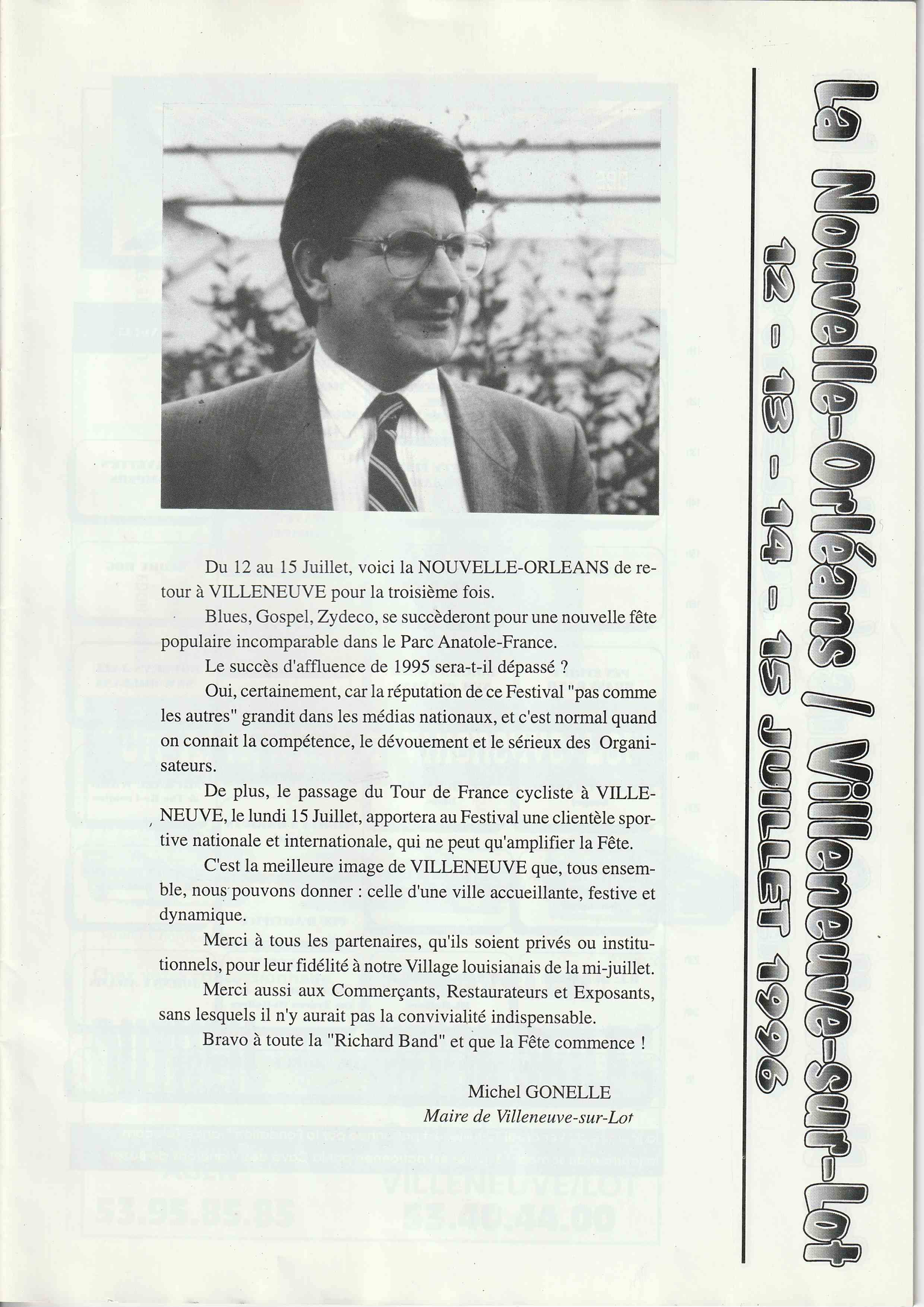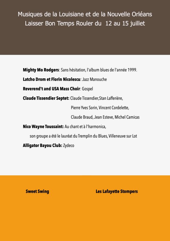 avec scène intégré dans un village de boutiques et de restauration, sur les conseils de Georges Wein, l'organisateur des plus grands Festivals. Il sera présent, ainsi que le Sydney Barthélémy, Maire de la Nouvelle Orléans, pour inaugurer notre nouvelle orientation.