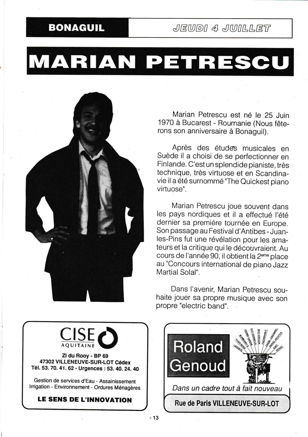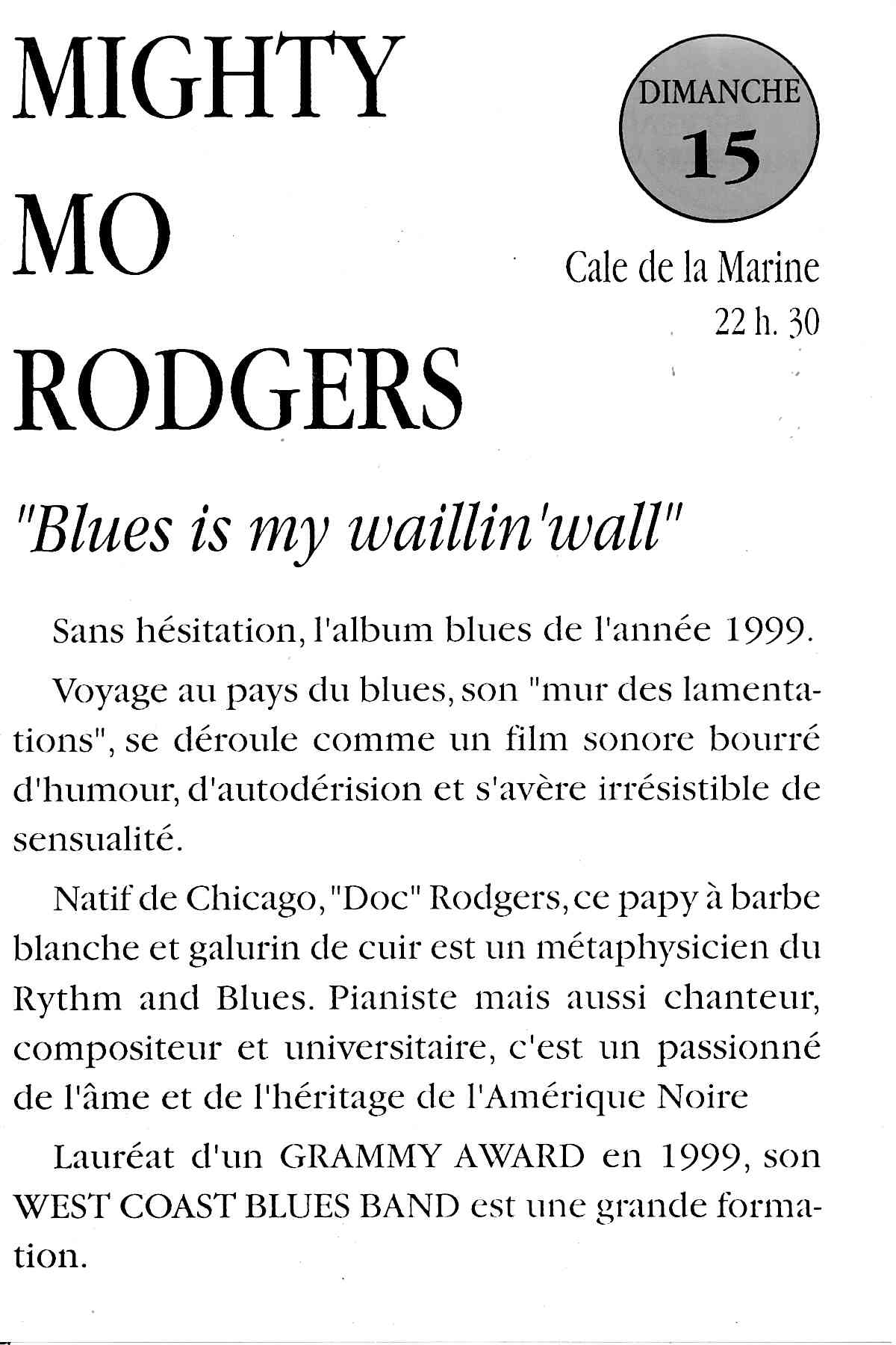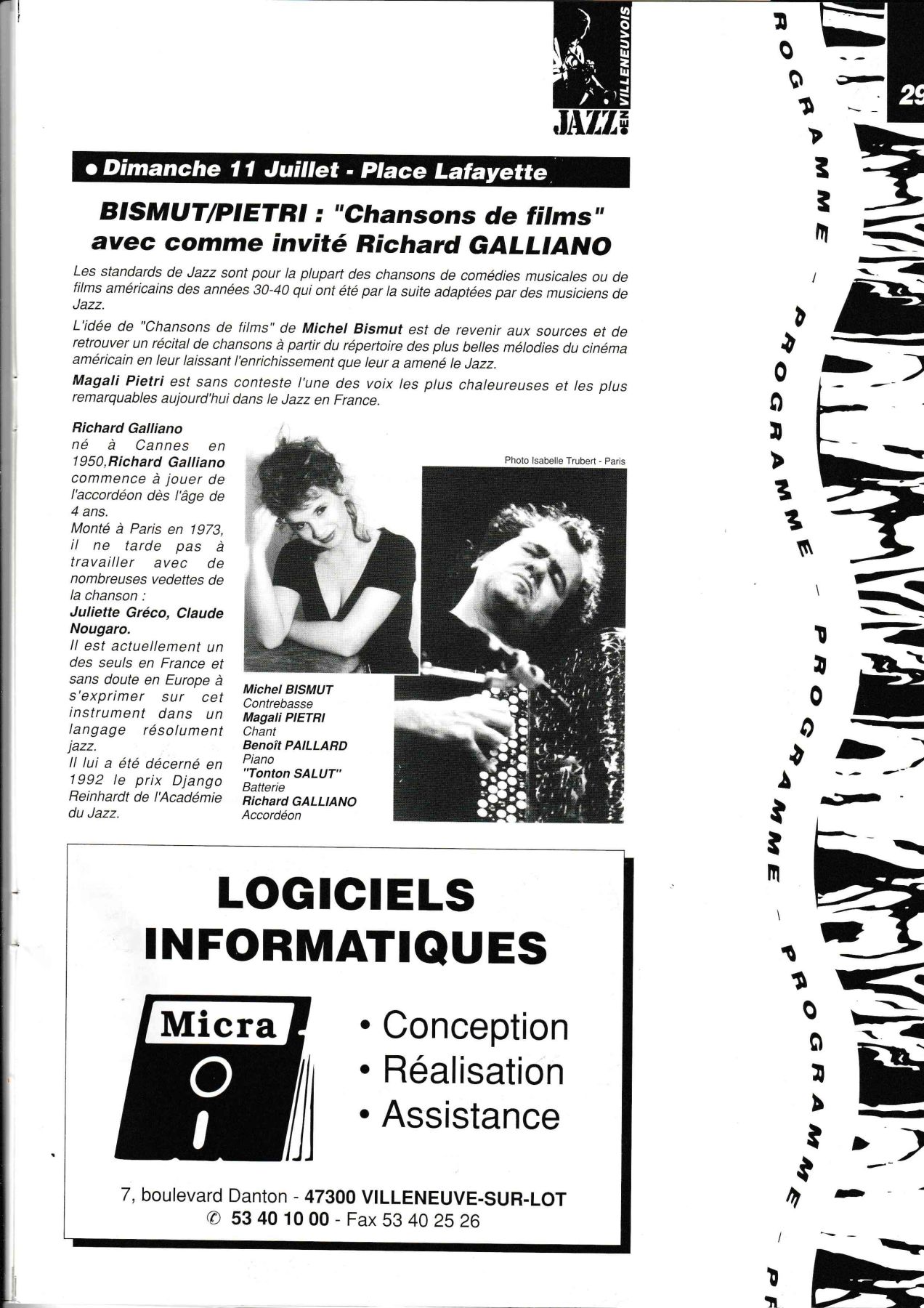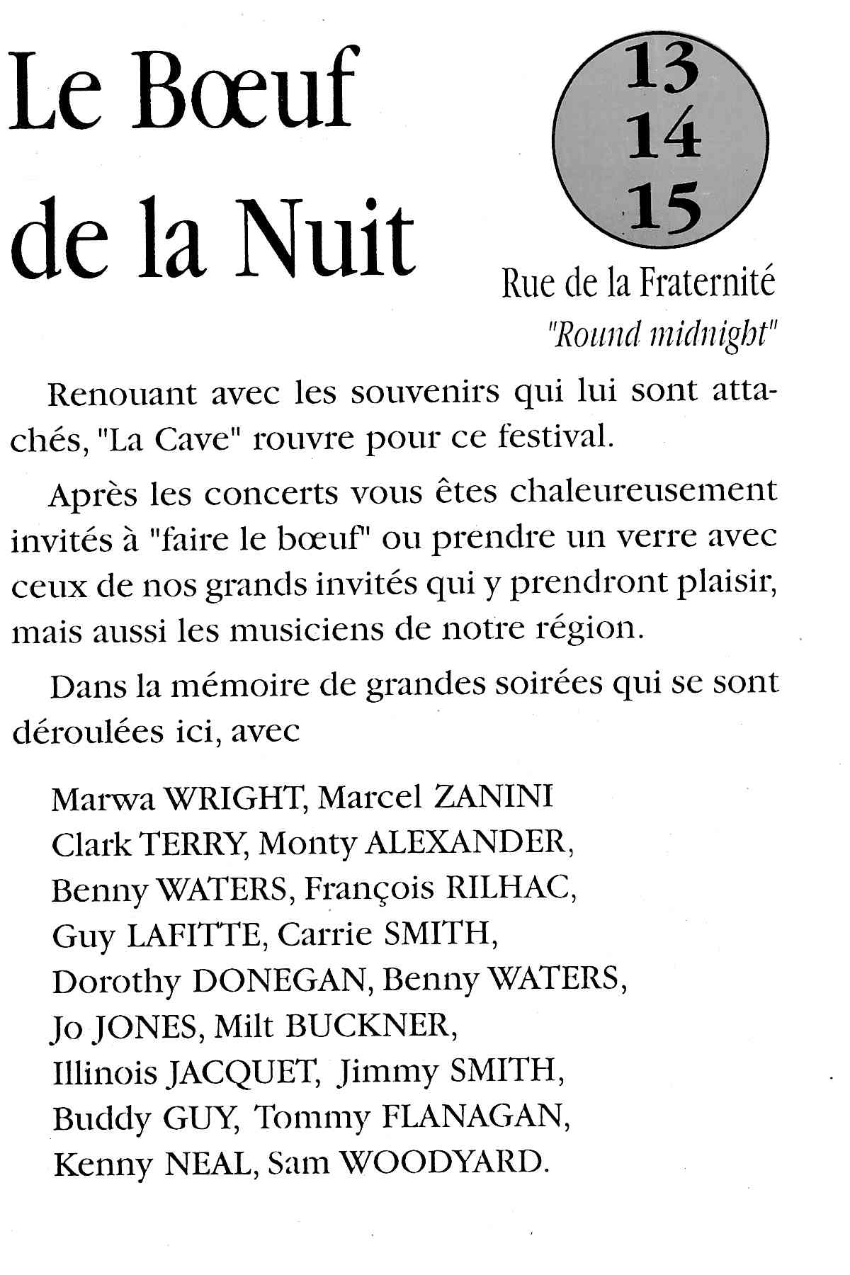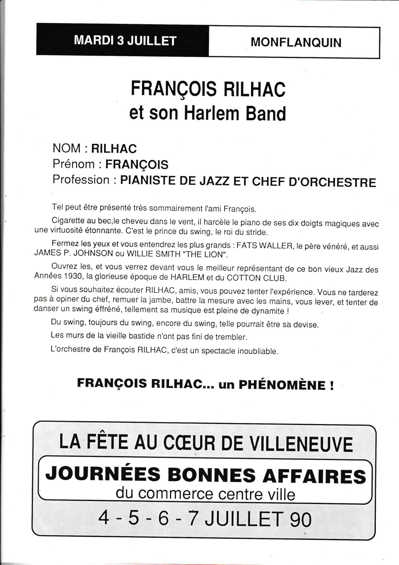 avec scène intégré dans un village de boutiques et de restauration, sur les conseils de Georges Wein, l'organisateur des plus grands Festivals. Il sera présent, ainsi que le Sydney Barthélémy, Maire de la Nouvelle Orléans, pour inaugurer notre nouvelle orientation.