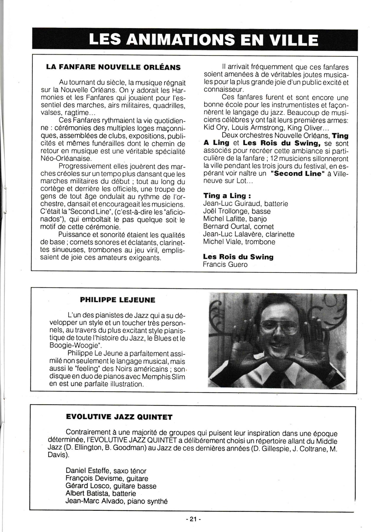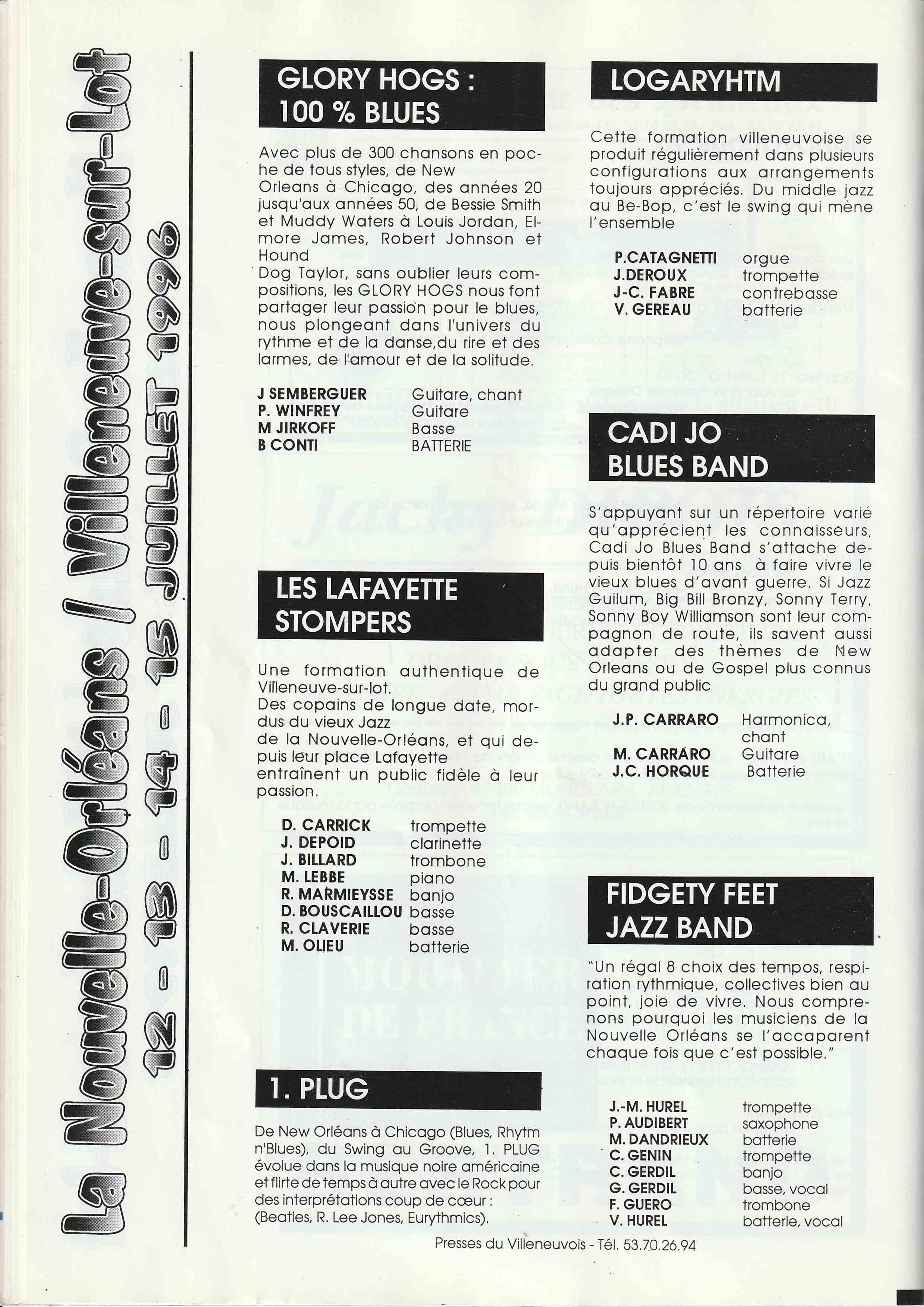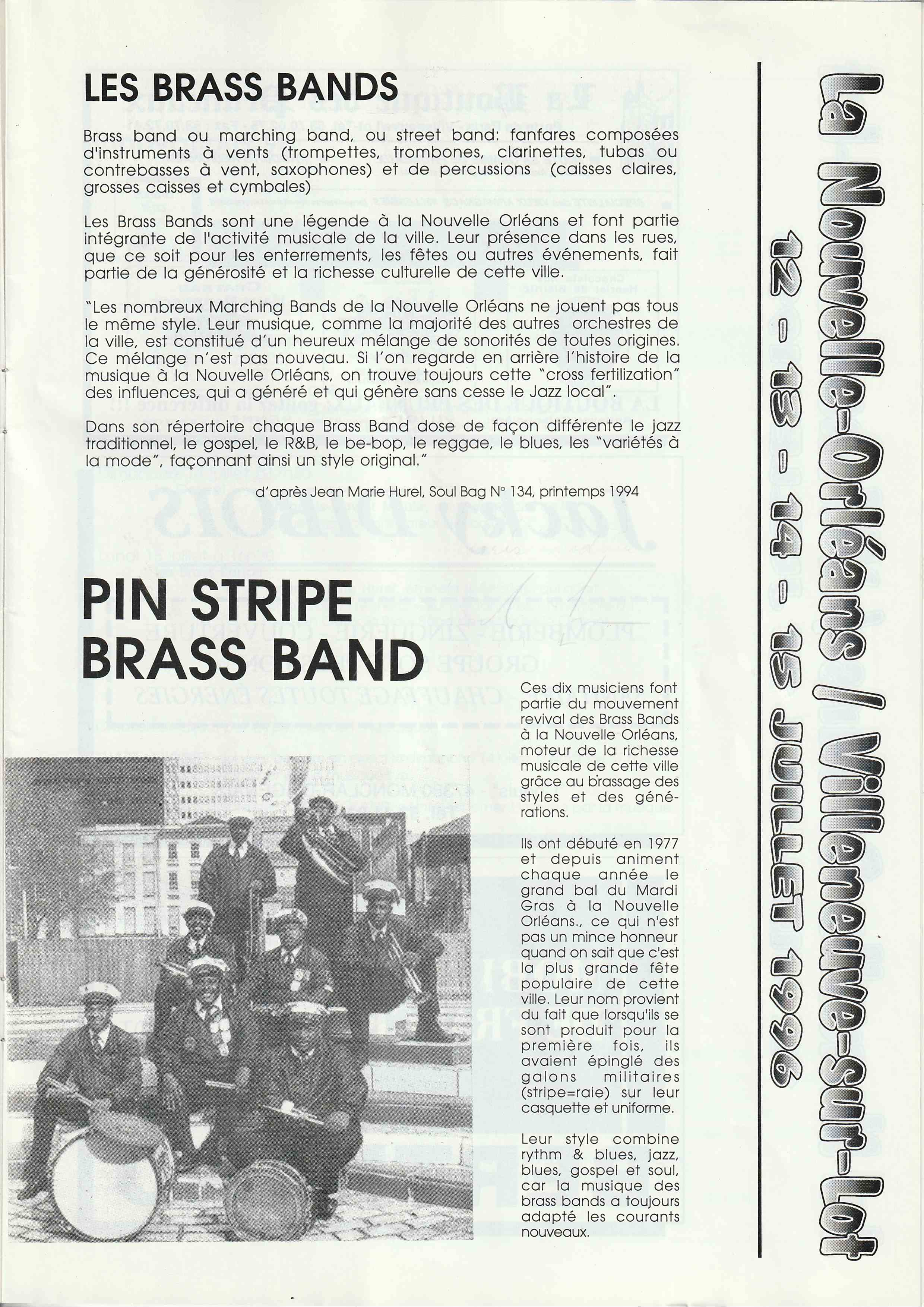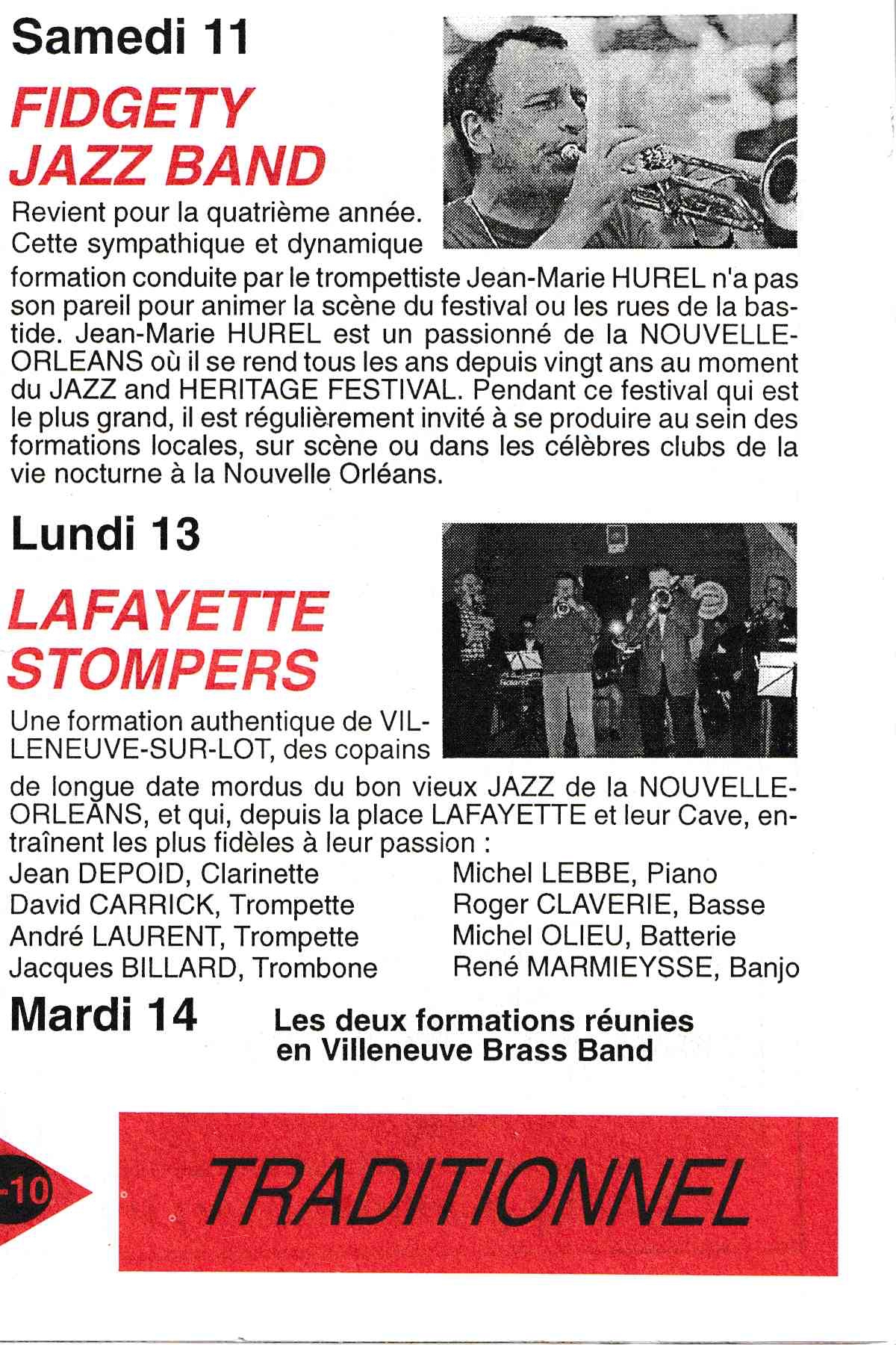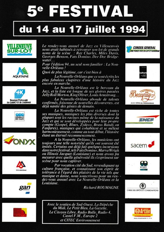 En avril 1993, 15 membres de Jazz En Villeneuvois sont partis au "New Orleans Heritage & Jazz Festival", un des plus grands Festival du monde avec 10 scènes simultanées et 8 heures de musique par jour chacune, sur 2 Week End.