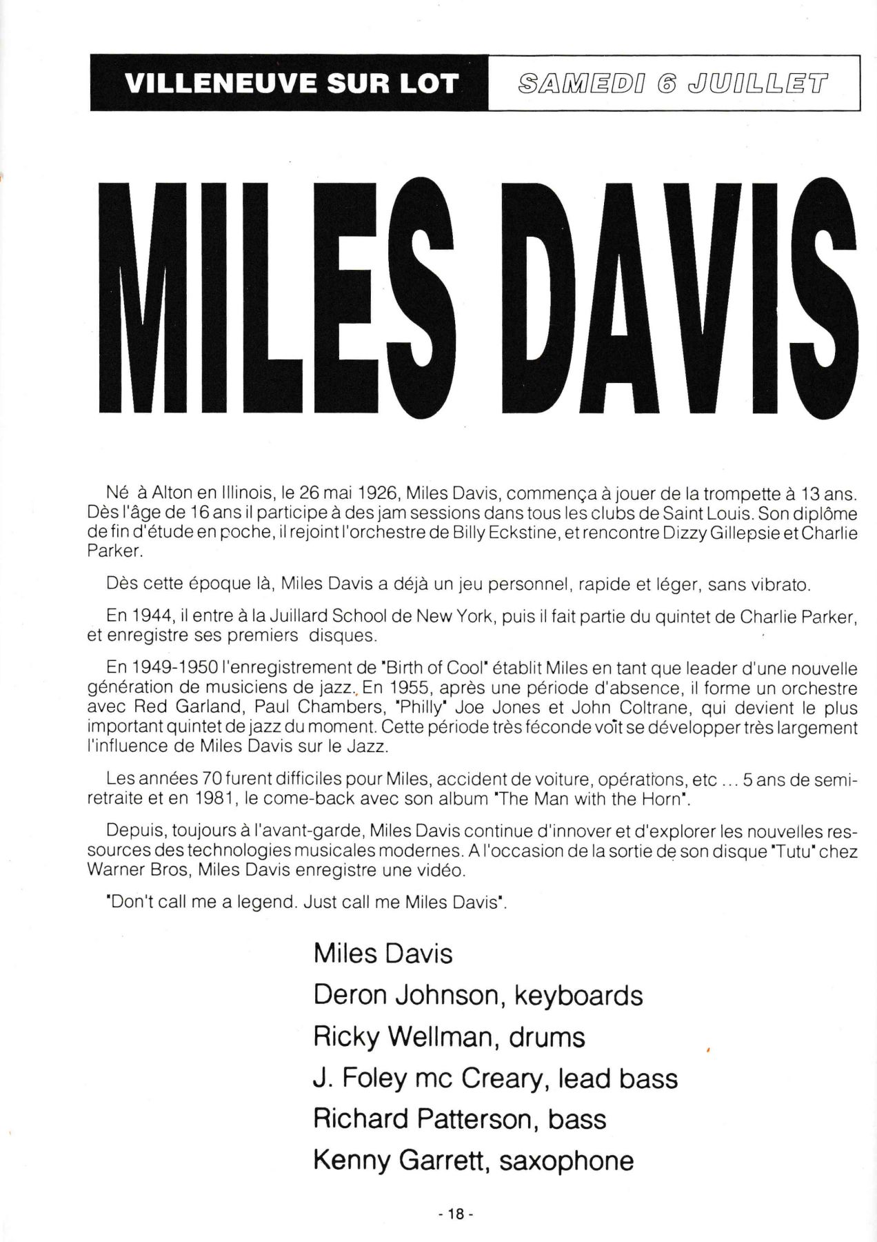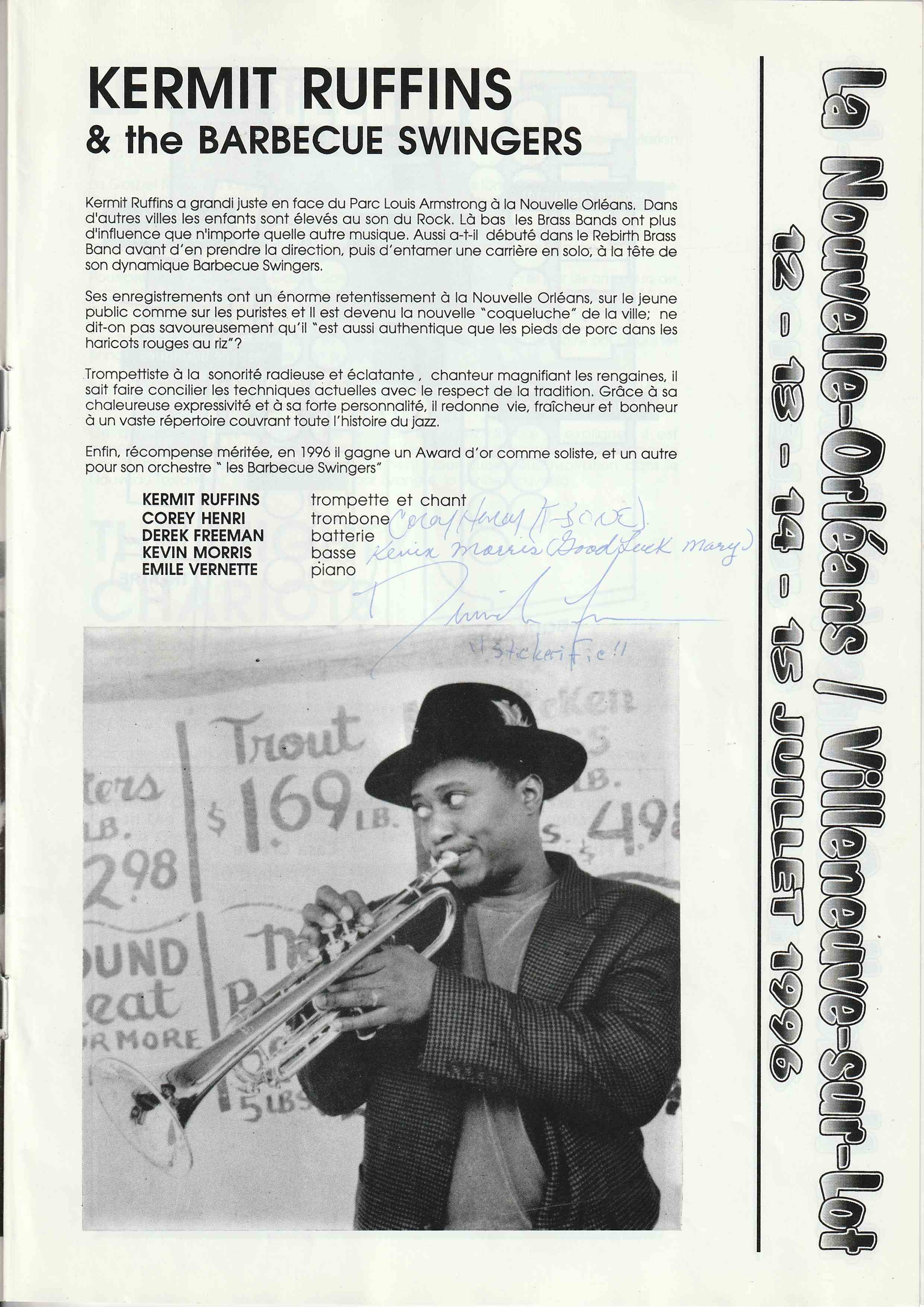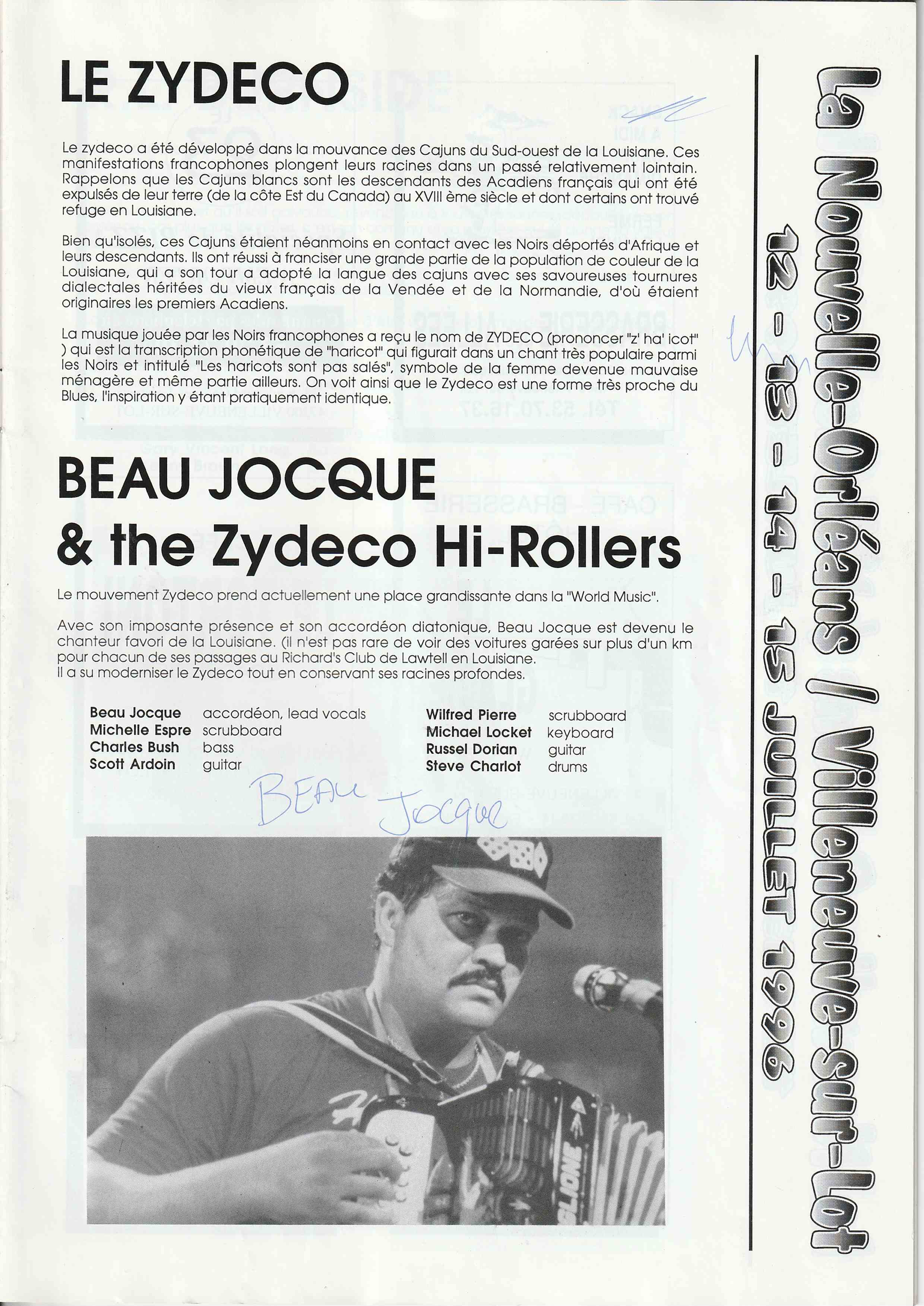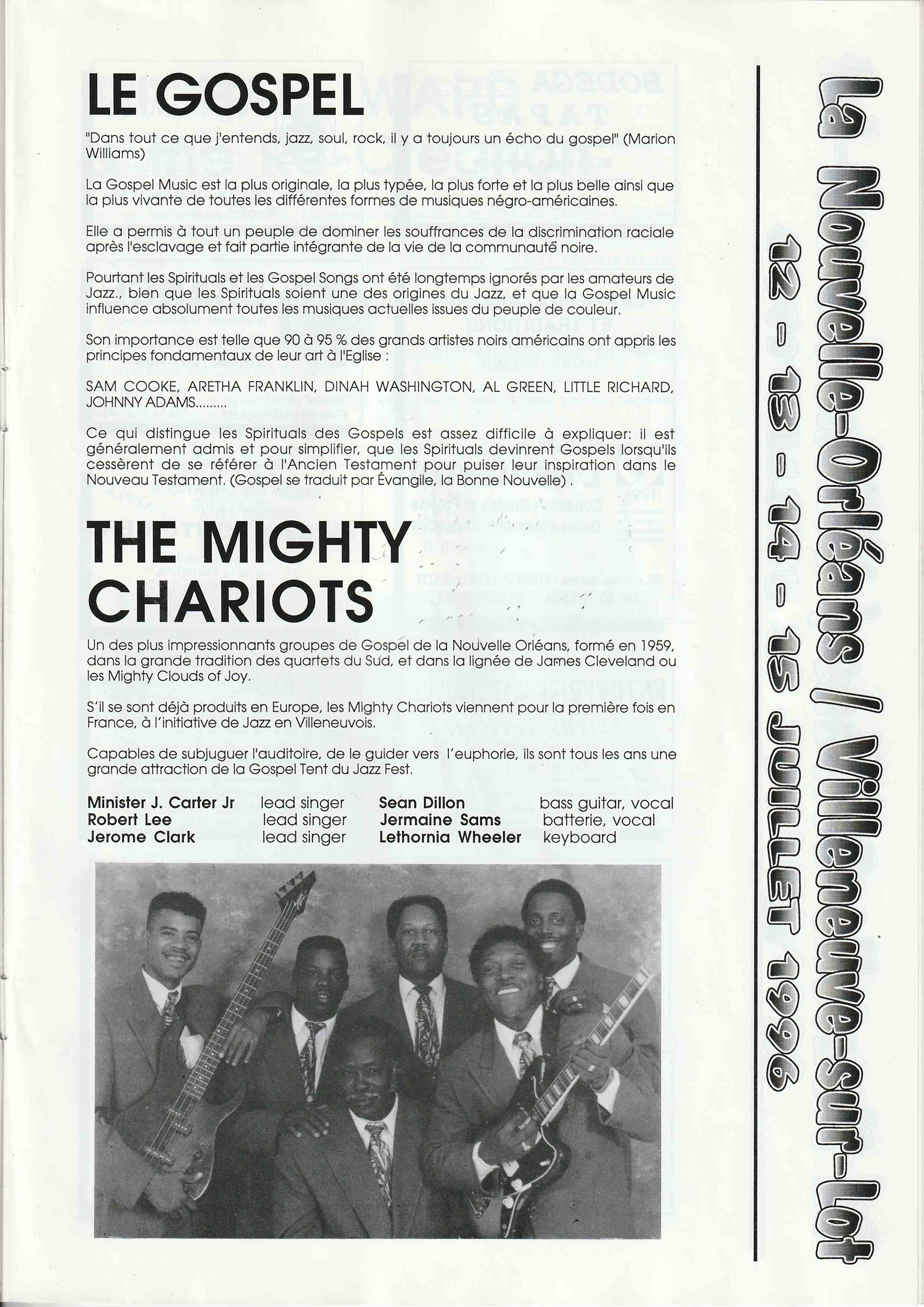 En avril 1993, 15 membres de Jazz En Villeneuvois sont partis au "New Orleans Heritage & Jazz Festival", un des plus grands Festival du monde avec 10 scènes simultanées et 8 heures de musique par jour chacune, sur 2 Week End.