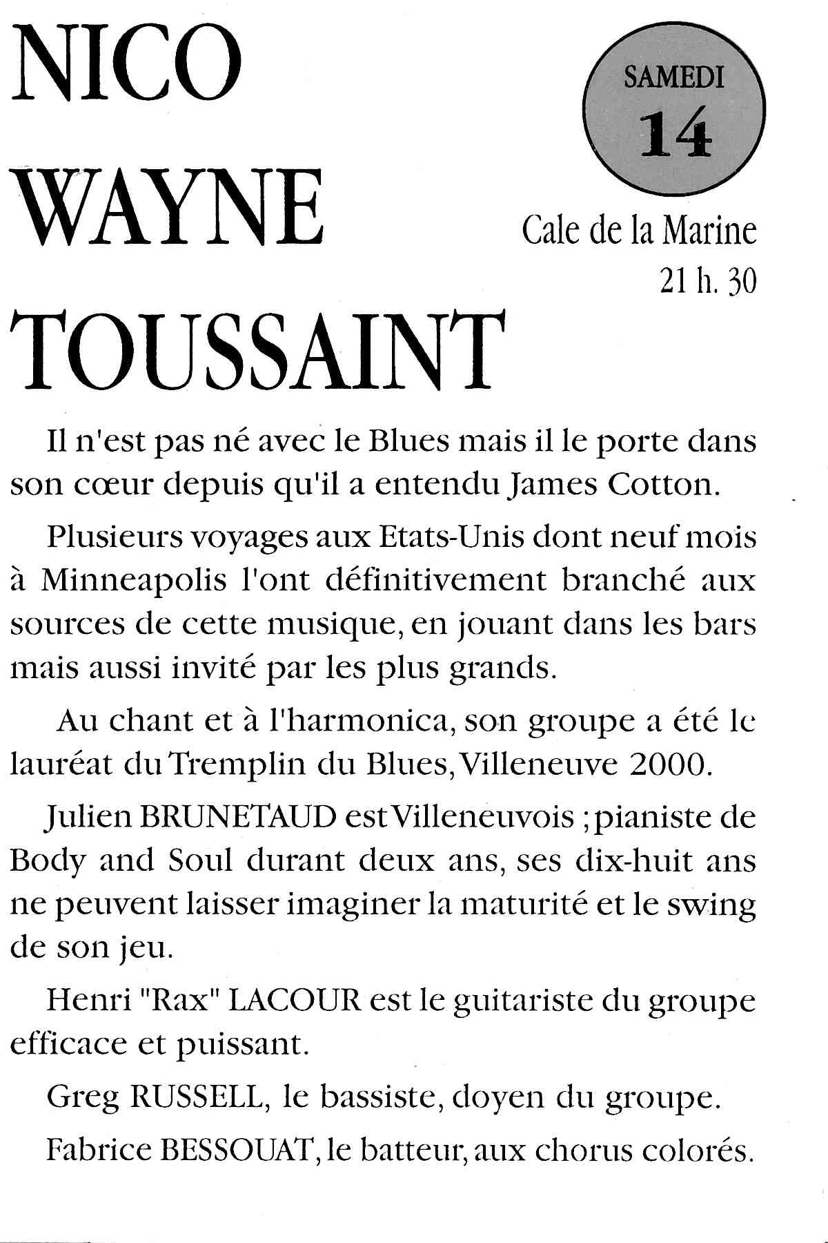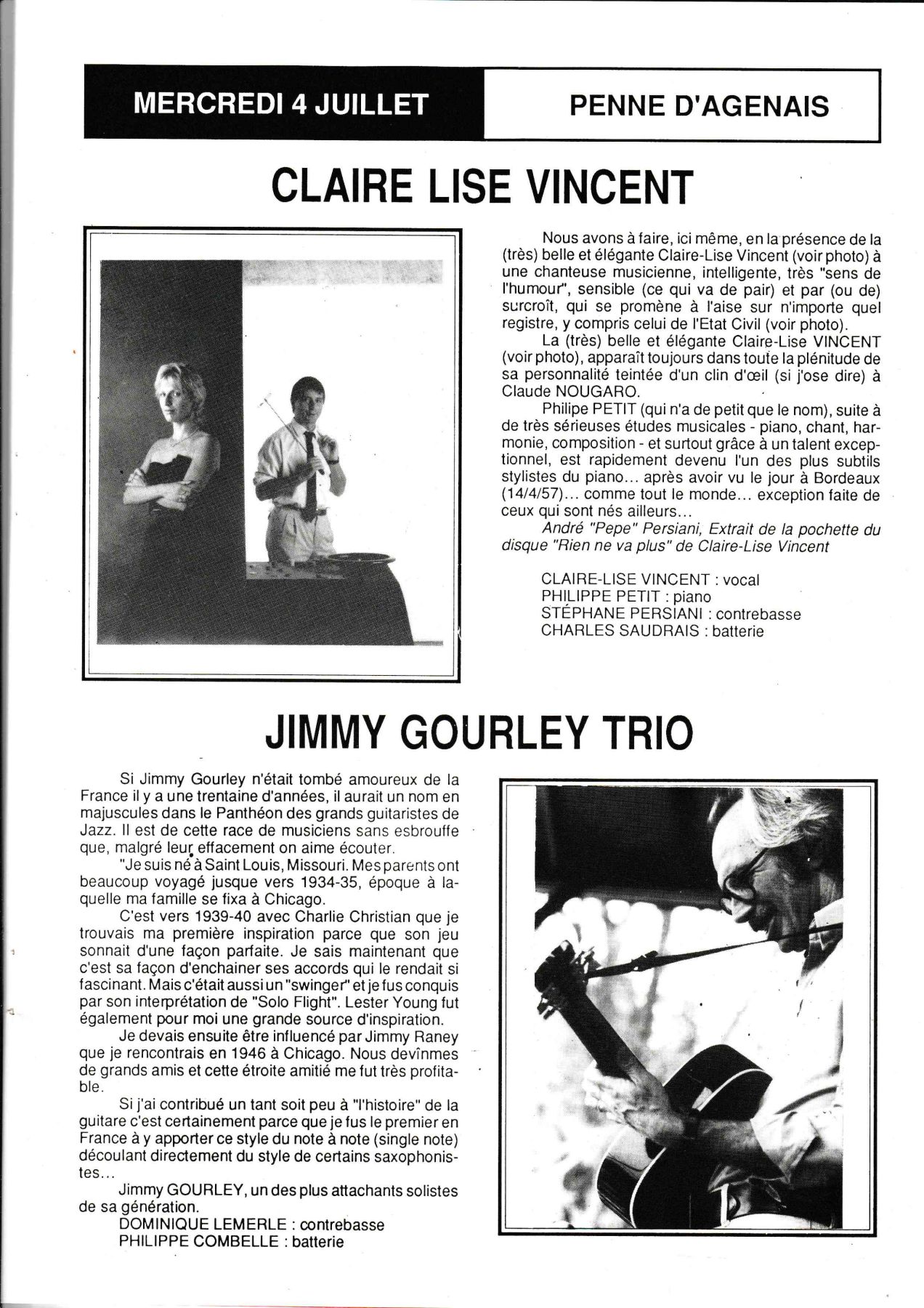 Marc Fosset: Guitare, Michel Pastre: Saxo ténor,