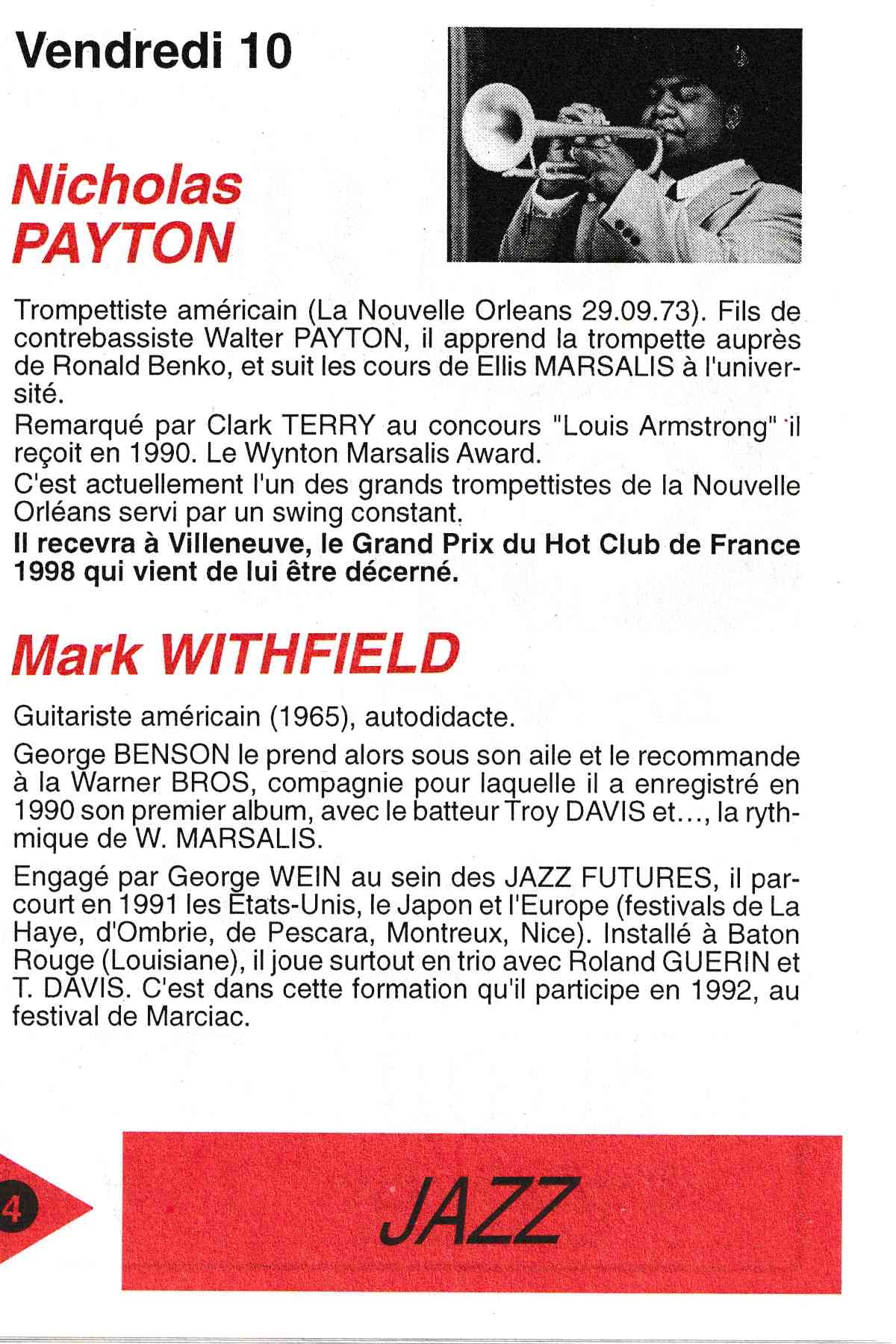 Le grand prix du disque 1997 du Hot Club de France est remis sur Scène à Nicolas Payton