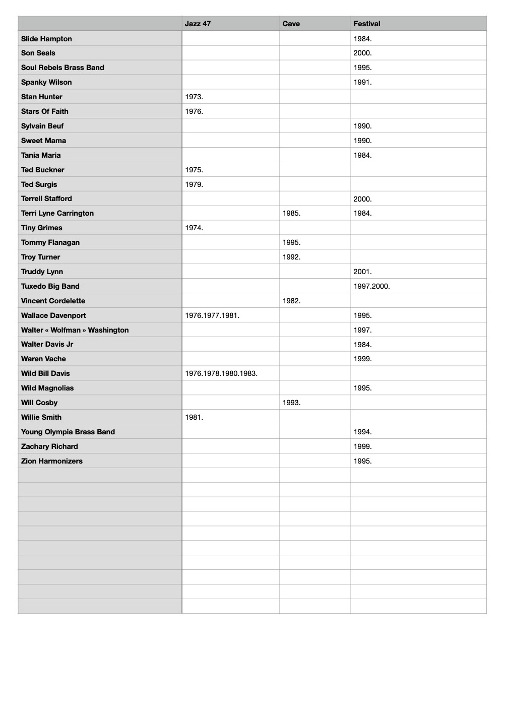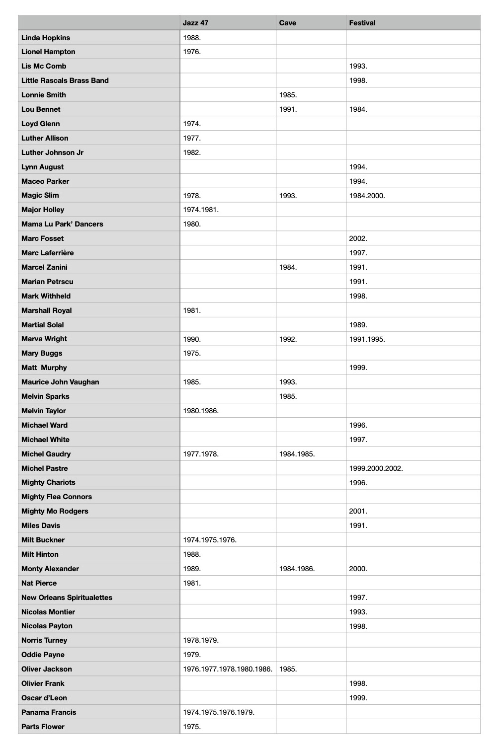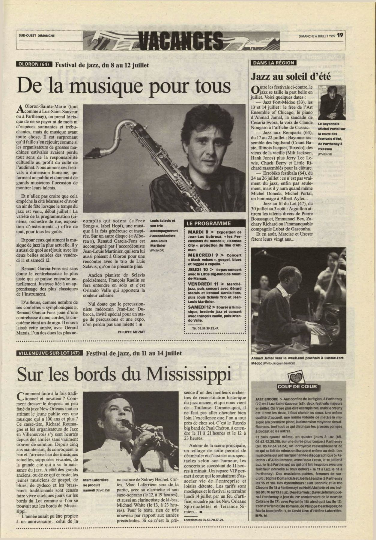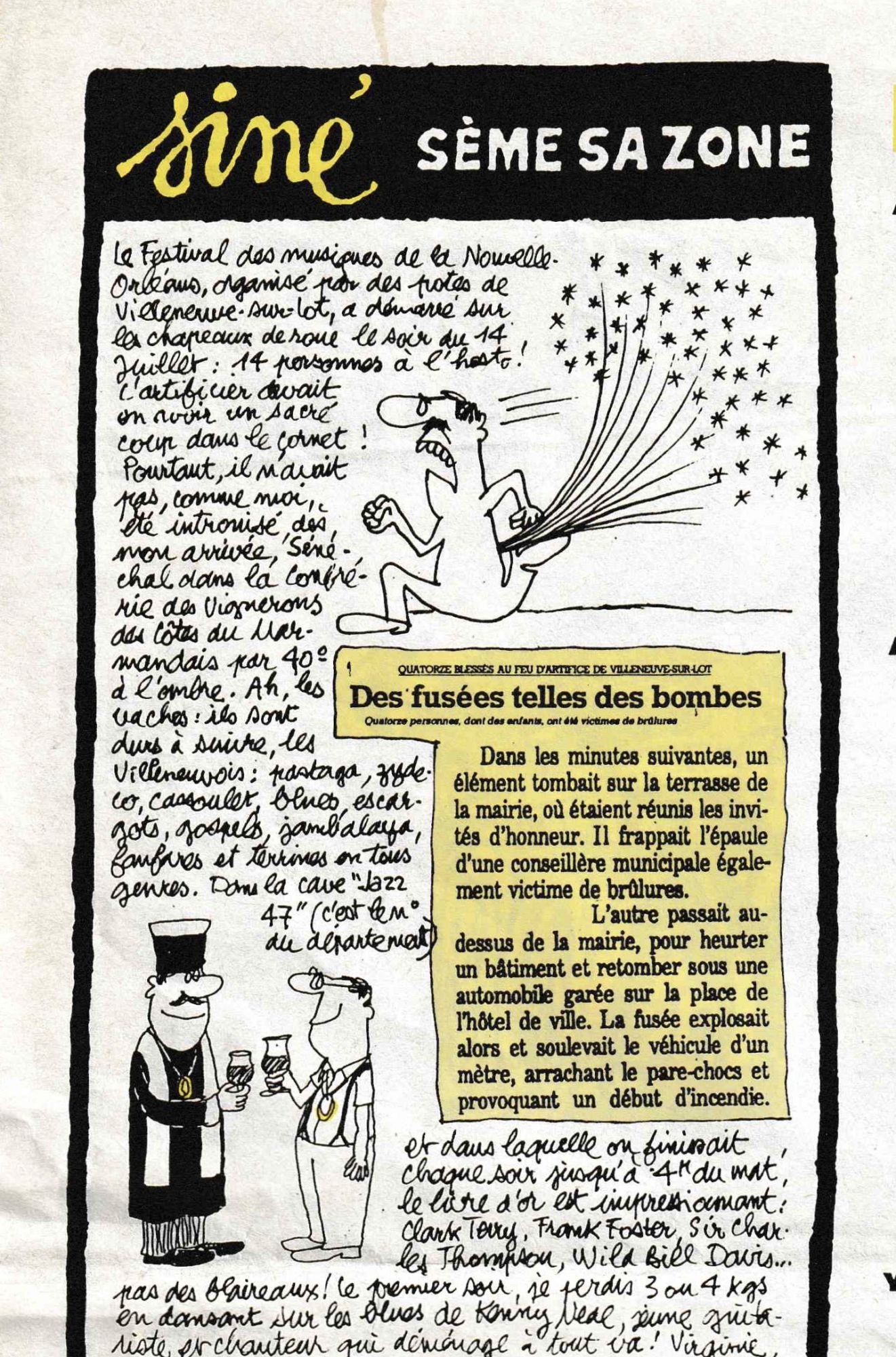 Toujours chez nos Hôtes, le Maire de la Nouvelle Orléans Sydney Barthélémy, le Maire de Villeneuve sur Lot Michel Gonelle, Georges Wein, Siné( Charlie Hebdo), Mr et Madame André Clergeat (musicilogue et co-auteur du Dictionnaire du Jazz ) et tout le bureau de Jazz en Villeneuvois