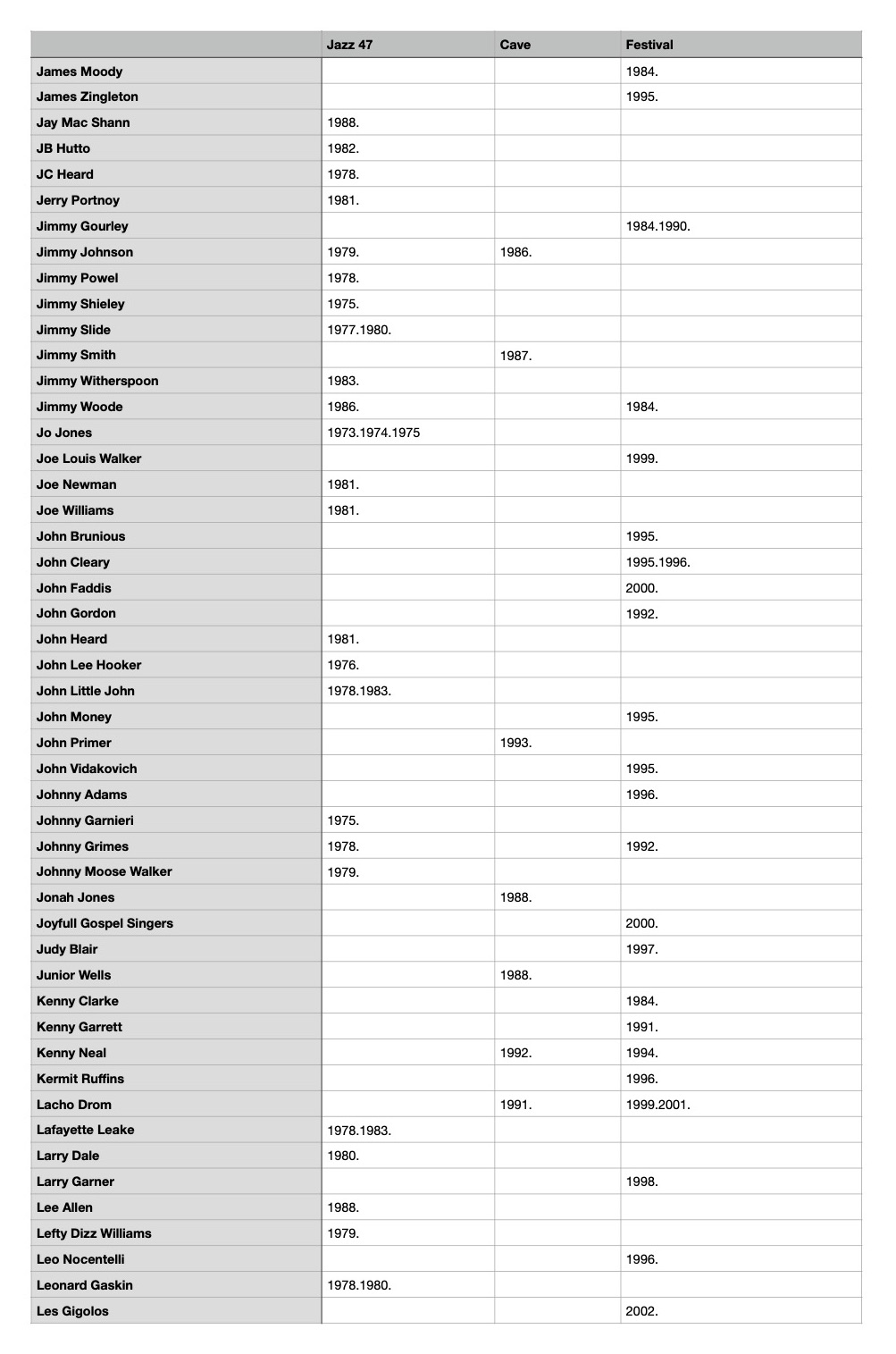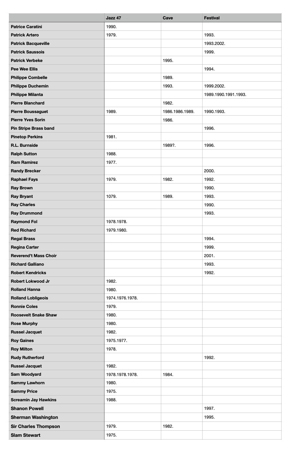 Sur ce lien, la liste impressionante ( 846) des enregistrements Black and Blue, notre principal "fournisseur" et grâce a qui