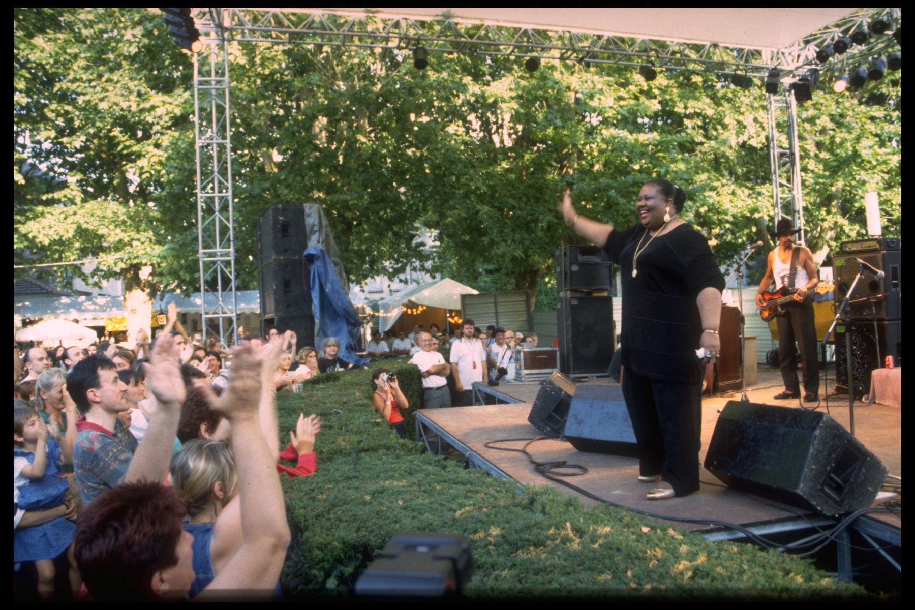 Les "Electrifyng Crown Seekers", groupe majeur du Gospel nous avait impressionné à la Nouvelle Orléans et n'a pas failli à sa réputaton le samedi 11 juillet 1998 au Parc des Fontanelles